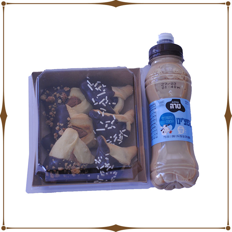 A nice small box with assorted Hamantachen of different flavors and toppings.